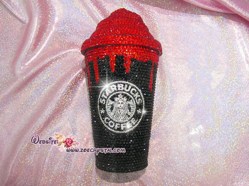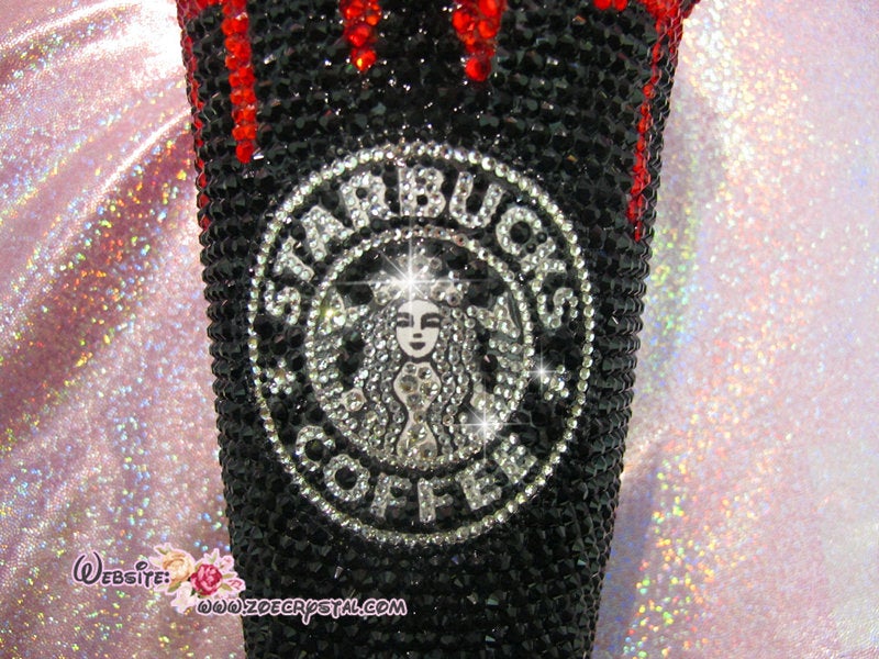 BLING STARBUCKS Coffee Cold Cup / Mug / Tumbler with Swarovski Crystal Rhinestone Cream Top Lid Shane Dawson Trisha Paytas Zoe