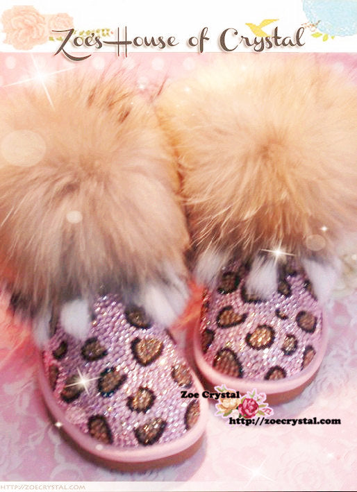 PROMOTION WINTER Bling and Sparkly Leopard Strass SheepSkin Wool BOOTS w shinning Czech or Swarovski crystal