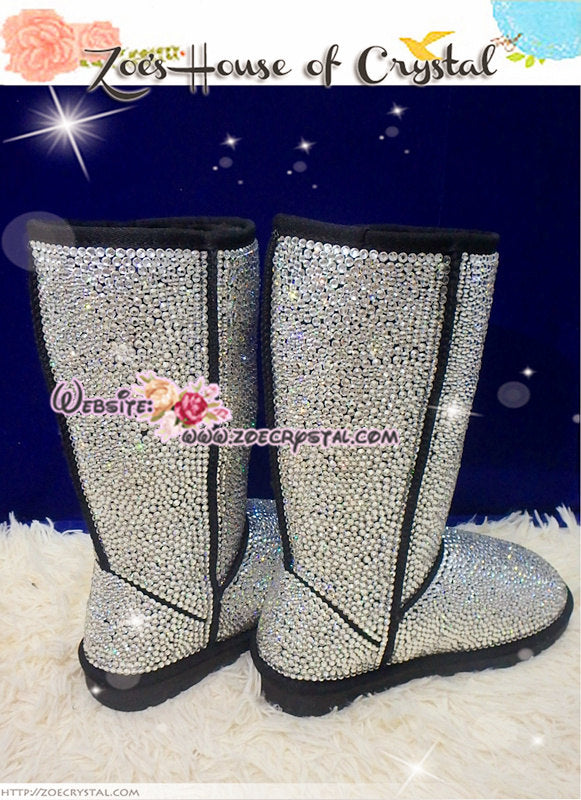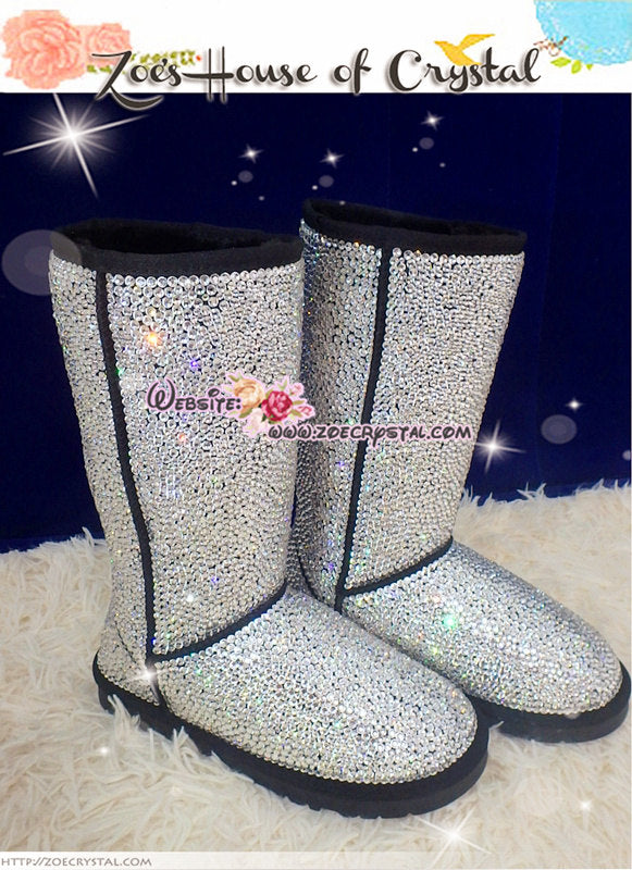 PROMOTION WINTER Bling and Sparkly Strass SheepSkin Wool BOOTS w shinning Czech or Swarovski Crystals