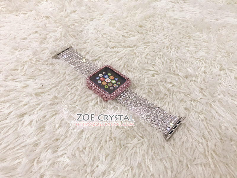 Apple Watch Bedazzled Bling Pink Crystal Case / Protector / Cover Silver White Swarovski Rhinestone iWatch Band / Strap