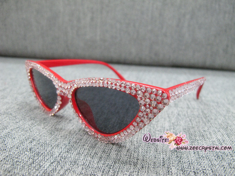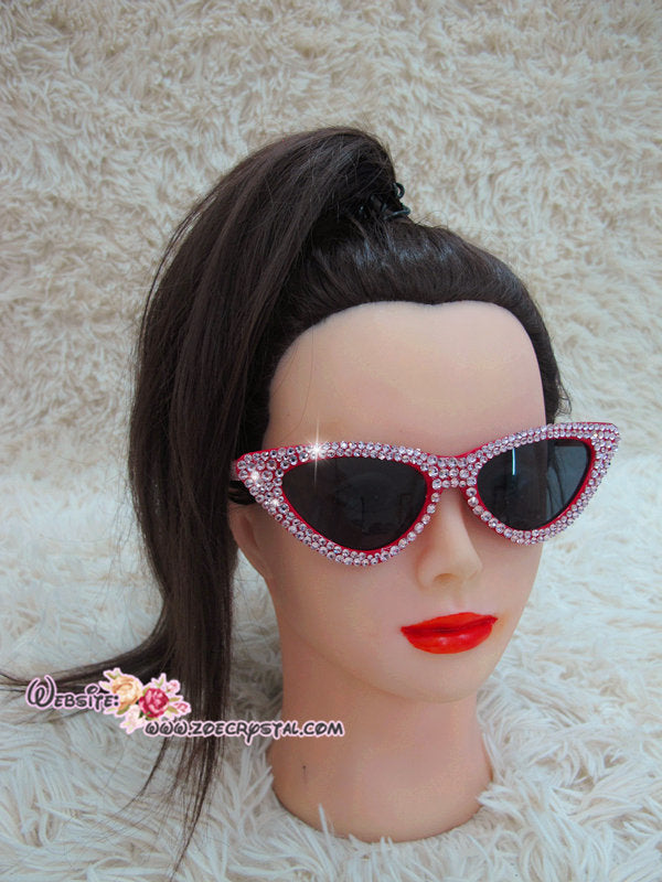 HOLLYWOOD Fashionable Cat Eye Sunglasses / Shades / Sunnies w Pink Bling Sparkly Bedazzled Rhinestones Festival Rockabilly Retro Pin Up