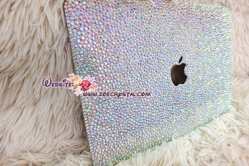 MACBOOK Air Pro Case / Cover in Aurora Borealis White Crystal Rhinestone Random Bejeweled Sparkly Shinny Glitter