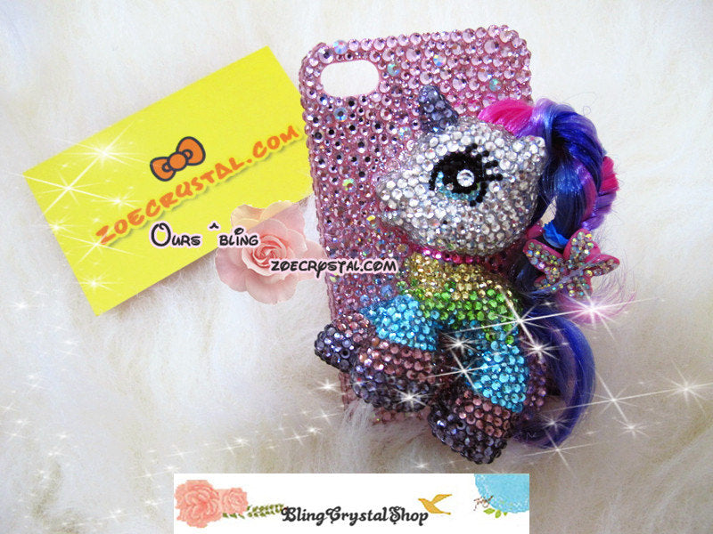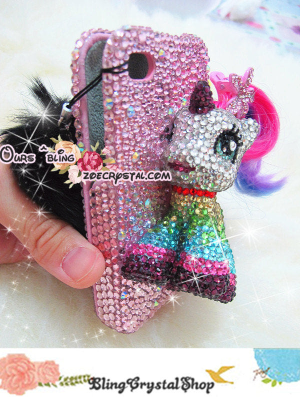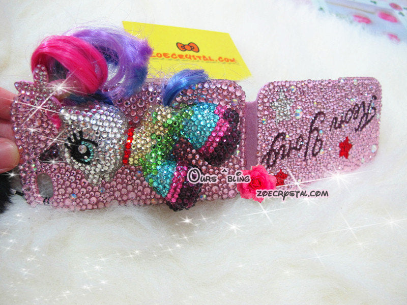 Czech/ Swarovski My Little Pony or UNICORN BLING Crystal 3D Cell Phone Flip Case - Double sides