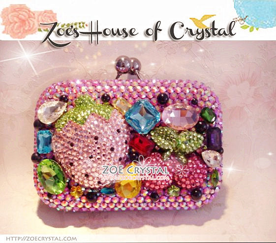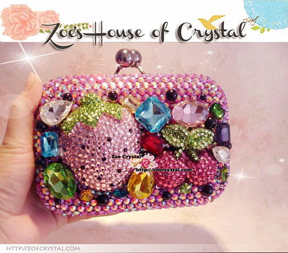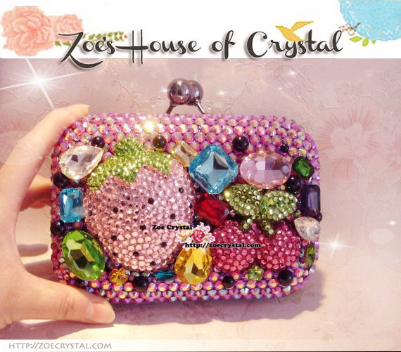 Bling and Sparkly CRYSTAL Clutch with Strawberies