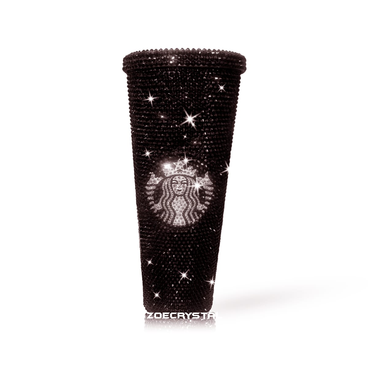 JET BLACK Bling STARBUCKS Coffee Cold Cup Tumbler Bedazzled Shinny Sparkly Glittery Swarovski Crystal Rhinestone Shane Dawson Trisha Paytas