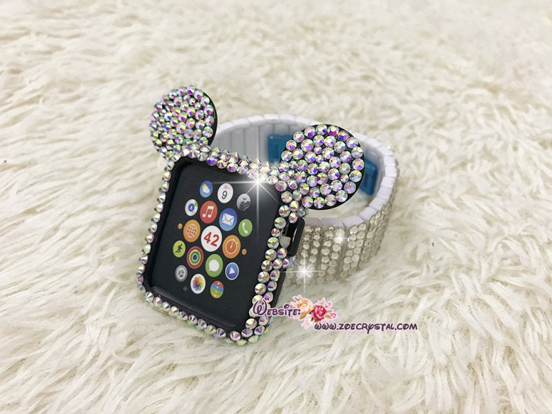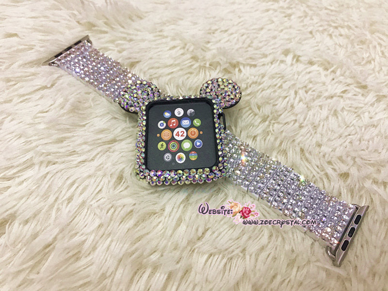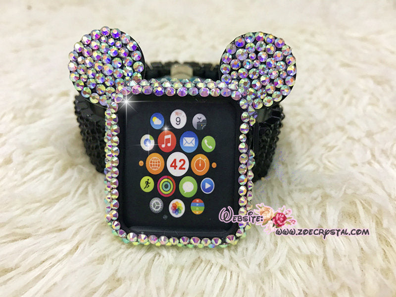 BEDAZZLED Apple Watch ab White Swarovski Case/ Protector / Cover with a Black Rhinestone iWatch Band / Strap