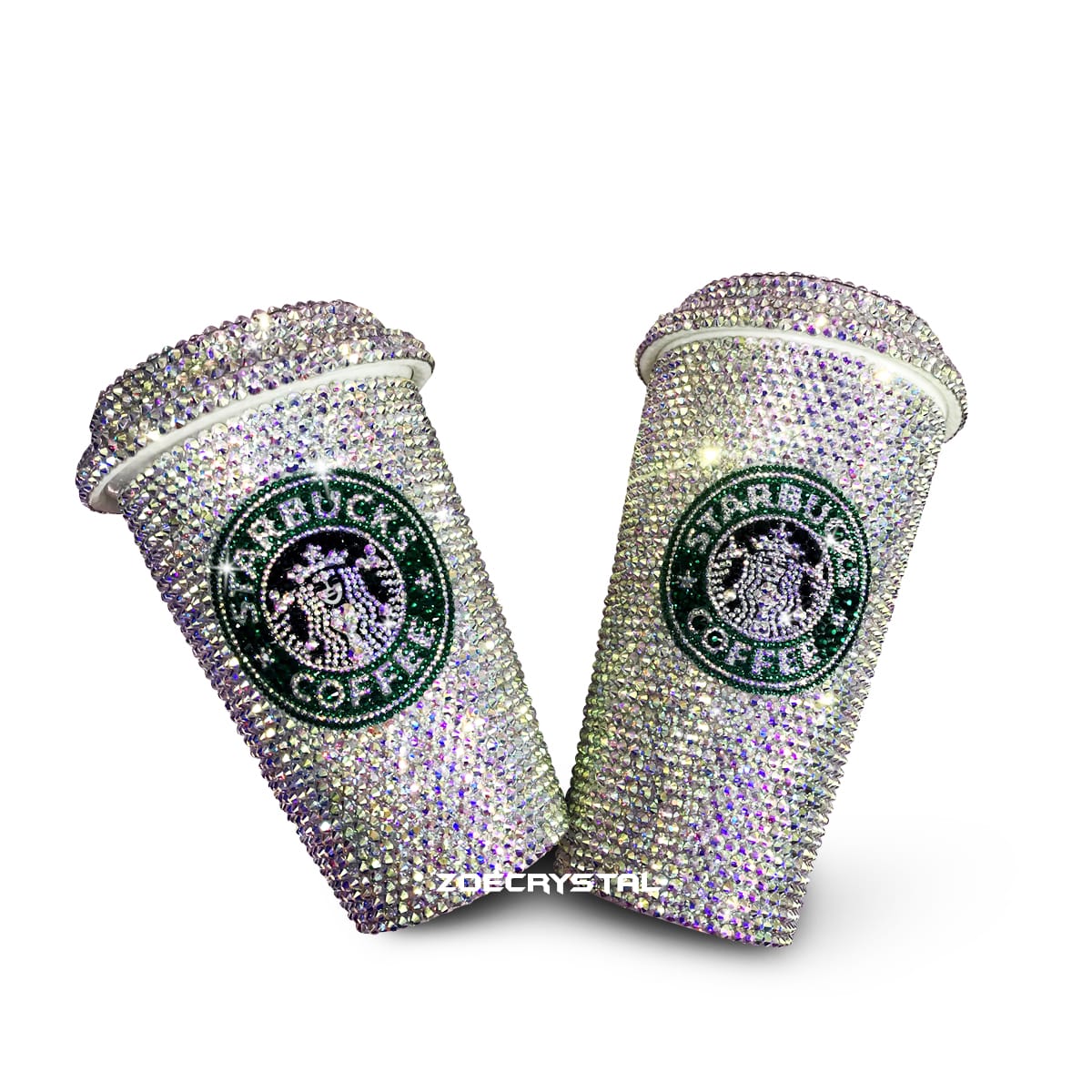 Bedazzled BLING STARBUCKS Coffee Cup / Mug / Tumbler Glitter Sparky Shinny w Swarovski Crystal Rhinestone Diamond Aurora white bejeweled Zoe