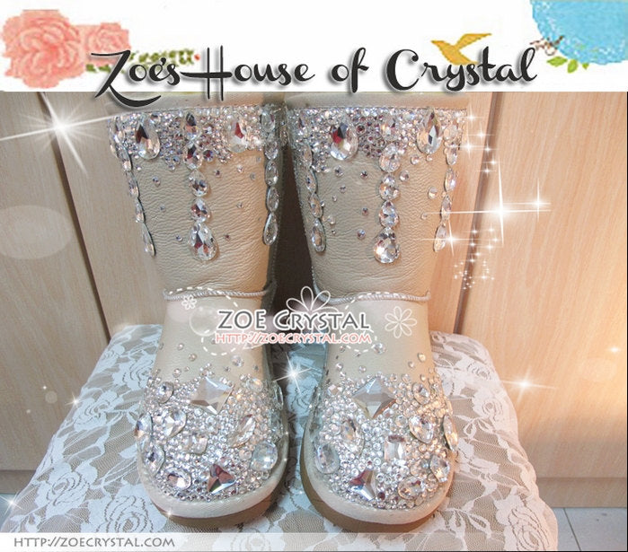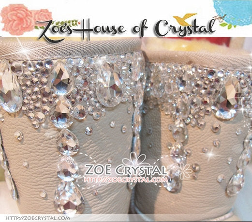 PROMOTION WINTER Beige Leather Sheepskin Fleech/Wool Boots with shinning and stylish CRYSTALS