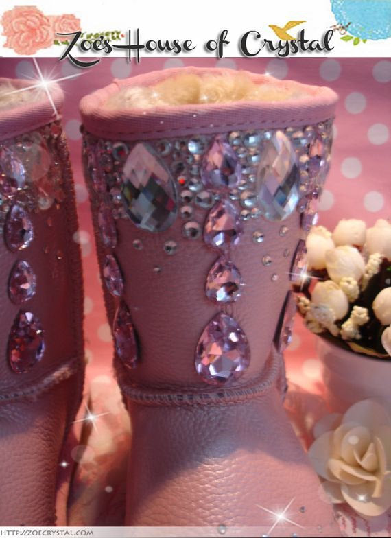 PROMOTION WINTER Pink Sheepskin Fleech/Wool Boots with shinning and stylish CRYSTALS