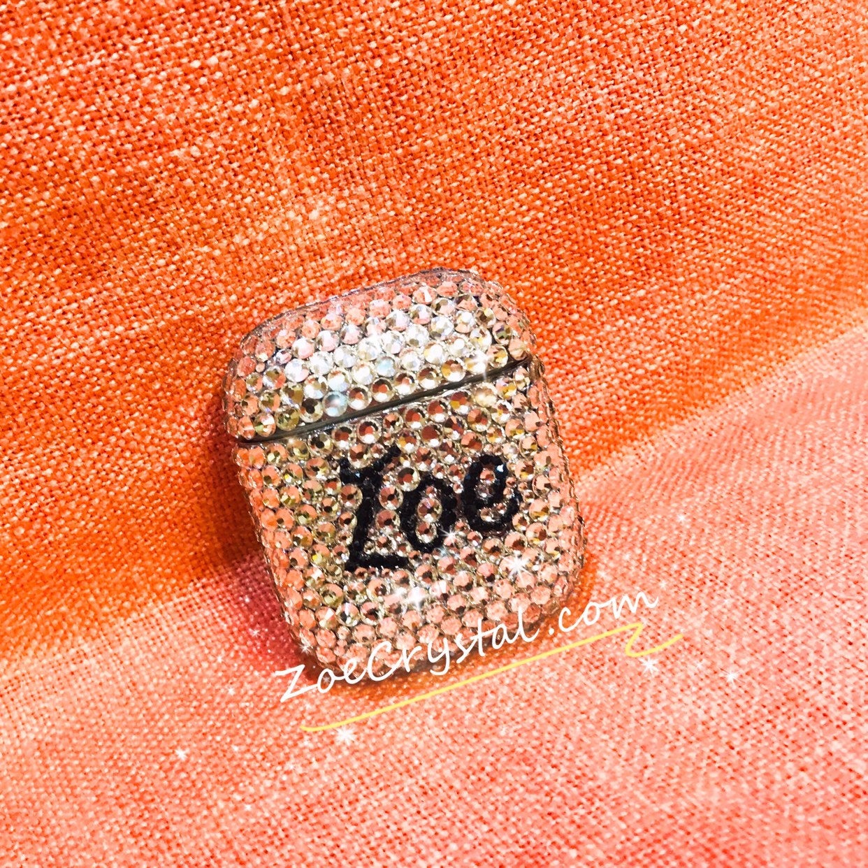 Bling and Bedazzled Airpod Charging Case / Cover /Holder in CLEAR WHITE Crystals personalised Pattern - Optional to Add Name or Words